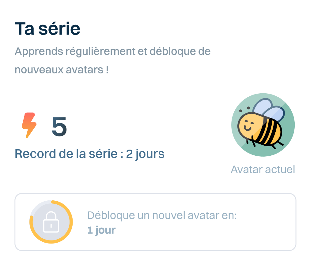Reste motivé grâce aux points, aux trophées et au suivi des progrès qui t’aideront à acquérir des habitudes d’apprentissage.
