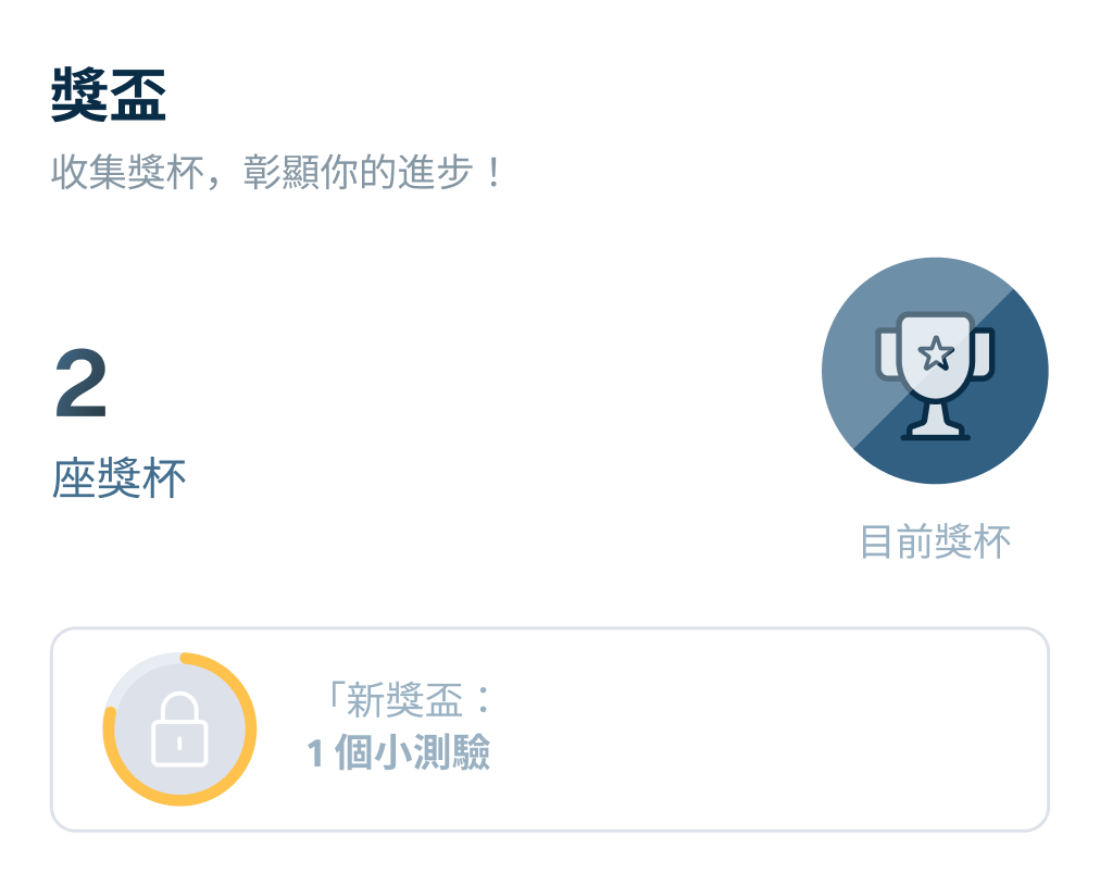 透過積分、獎盃和進度追蹤,保持學習動力,幫你養成持續學習的好習慣