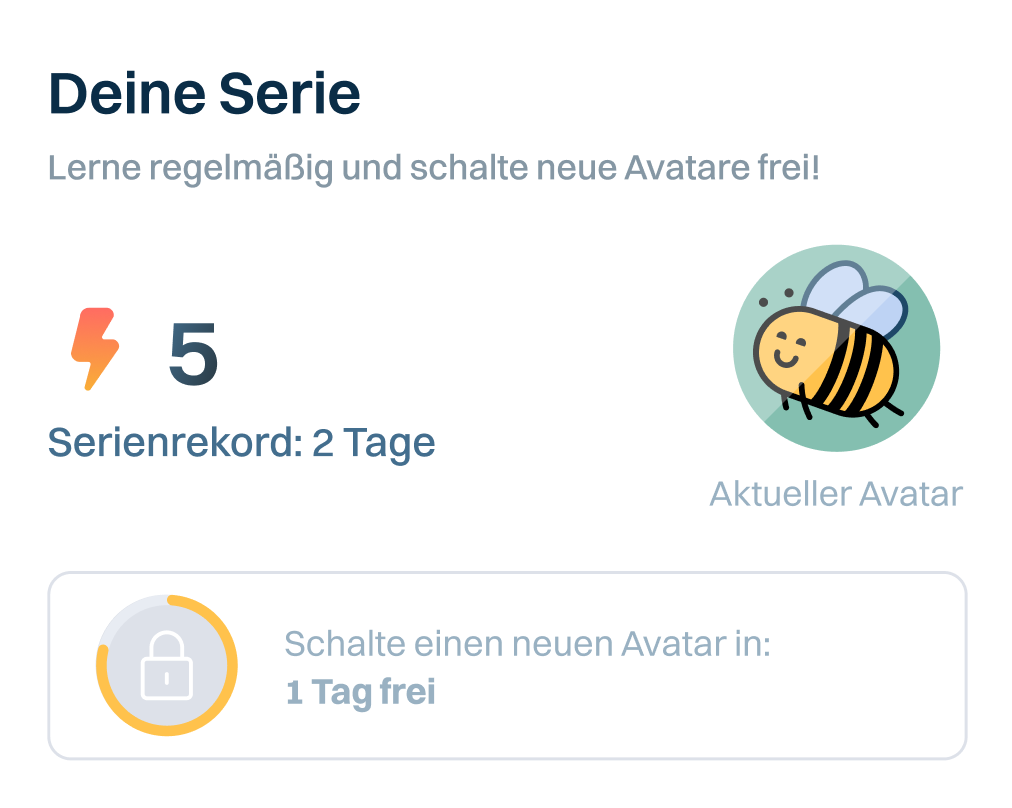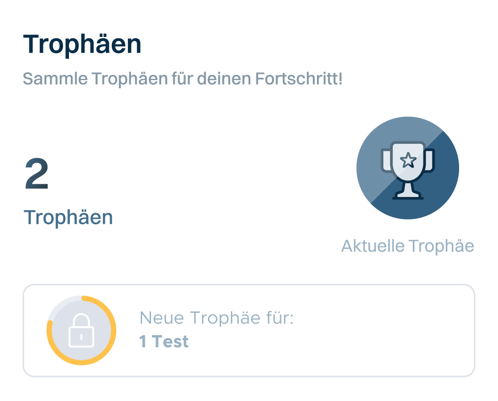 Bleib motiviert mit Punkten, Trophäen und Fortschrittsverfolgung, die dir helfen, eine Lerngewohnheit zu entwickeln.